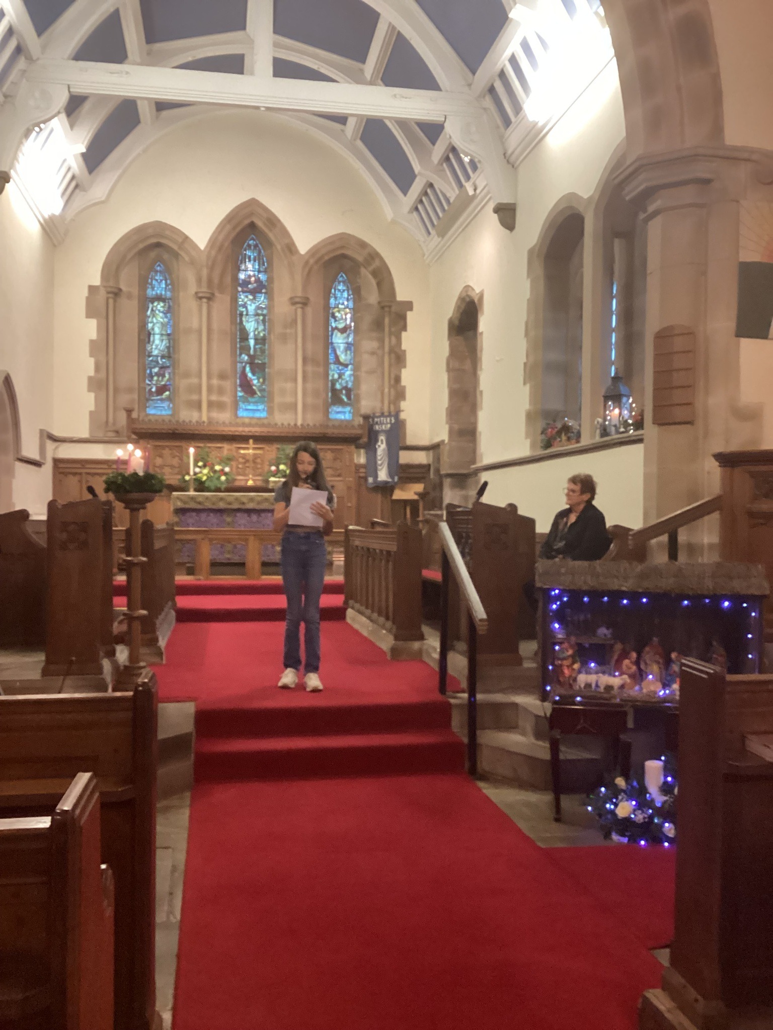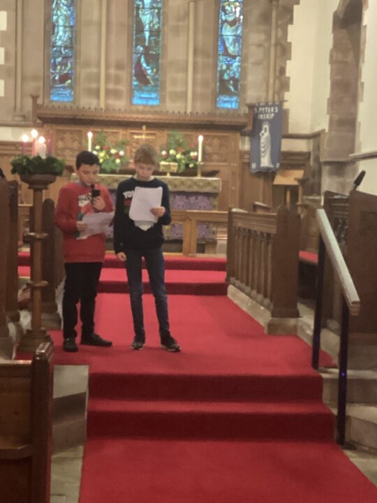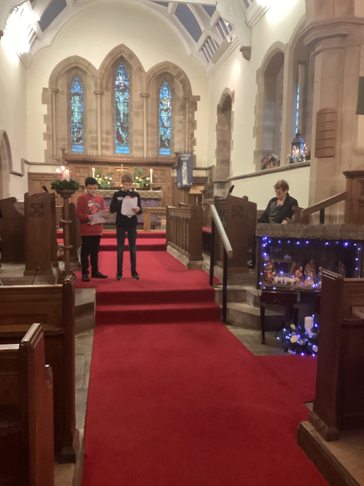 Some of our Upper School pupils took part in the lessons and carols service at St Peter’s Church this morning. They came to the front and each read parts of the story of the nativity. Abigail told us about Mary and Joseph’s long journey to Bethlehem and only being able to find a stable to stay in. Olivia read about the shepherds and their visit by God’s angels and finally, Alex G and Ben took it in turns to tell us all about the three magi from the East and the special gifts they brought for what they thought would be a new king.