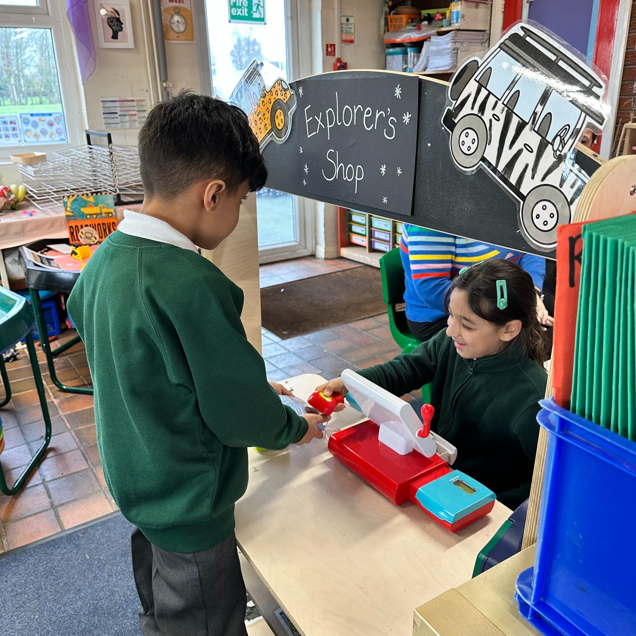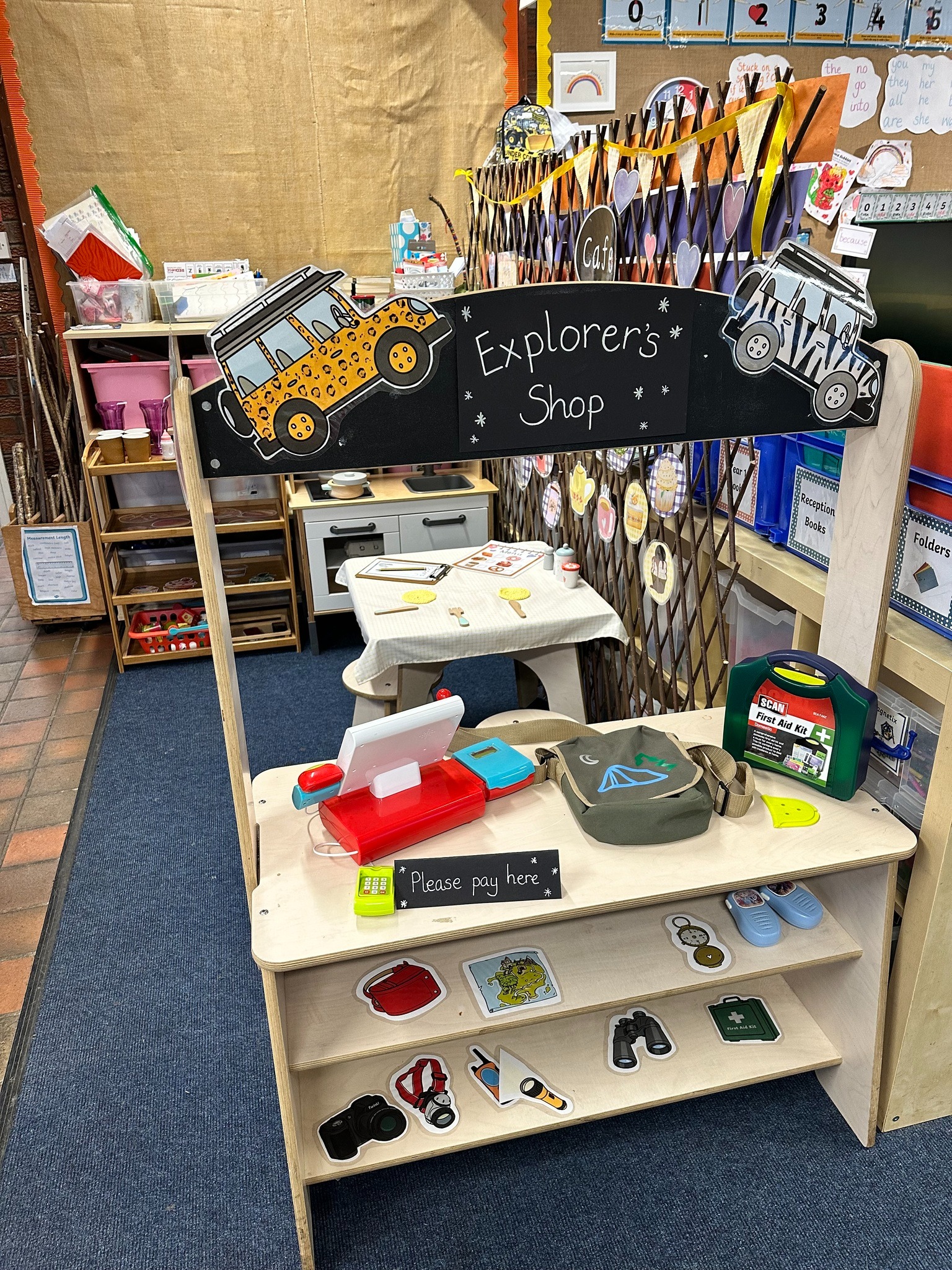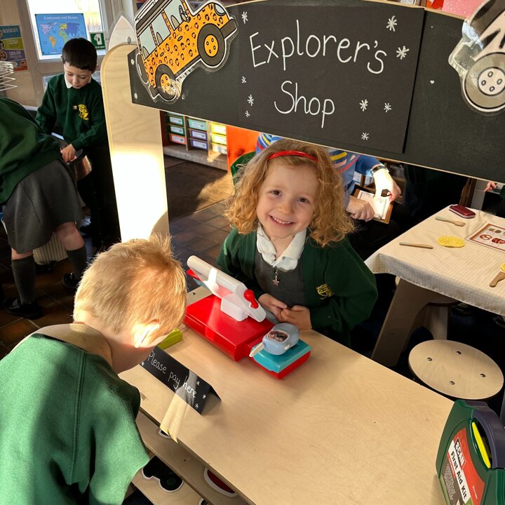 We have had a little move around in our Lower School classroom and now have a new role play area which the children are really enjoying. Our theme for learning in Year 1 and 2 this half term is ‘Explorers’ and after lots of discussion together the children got to decide what they wanted me to make for them as a new role play area so we now have a cafe and an Explorer’s shop!