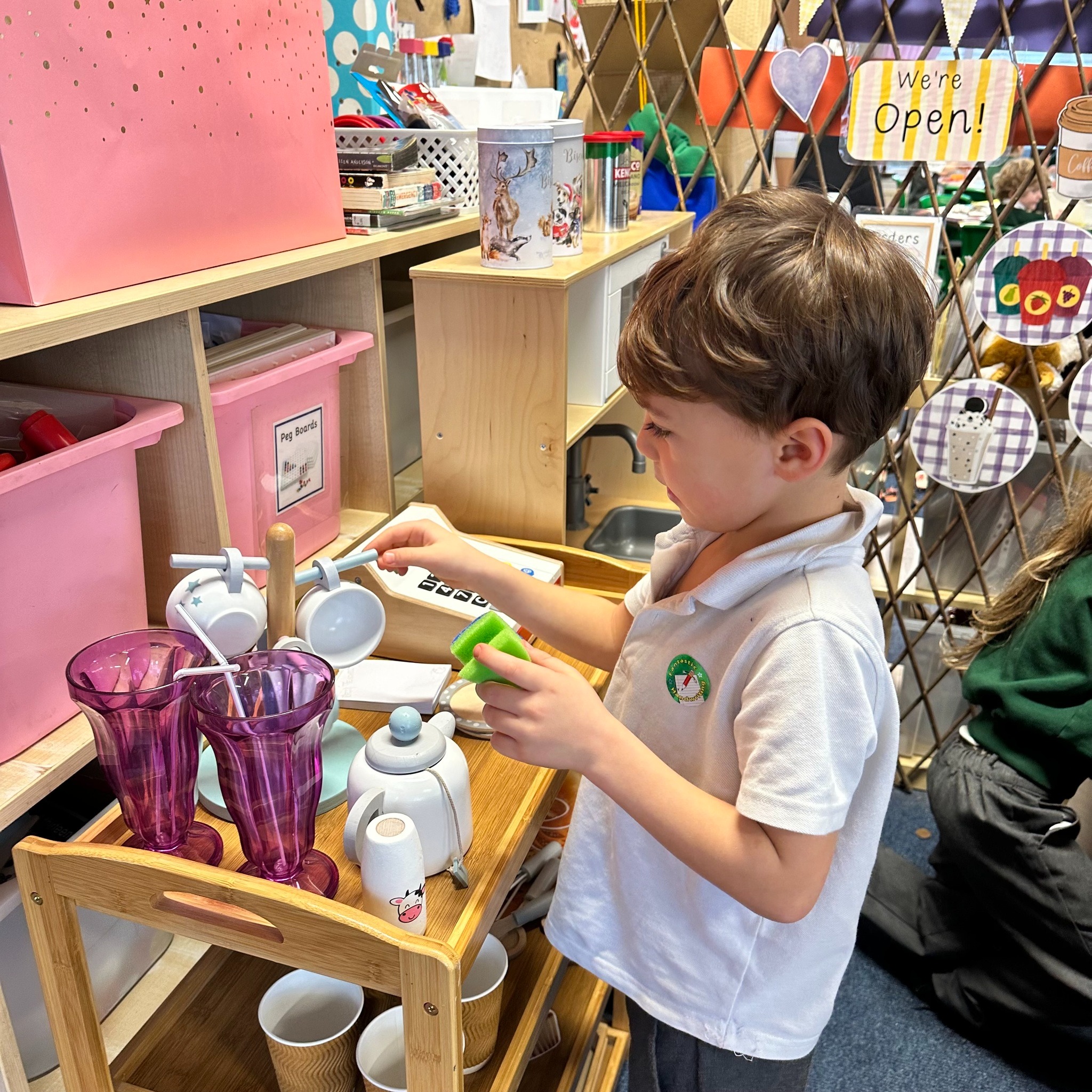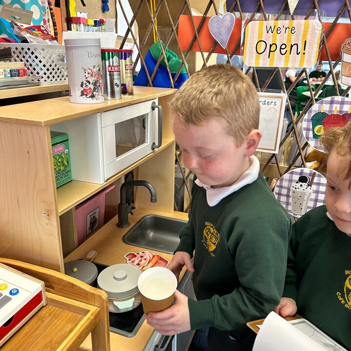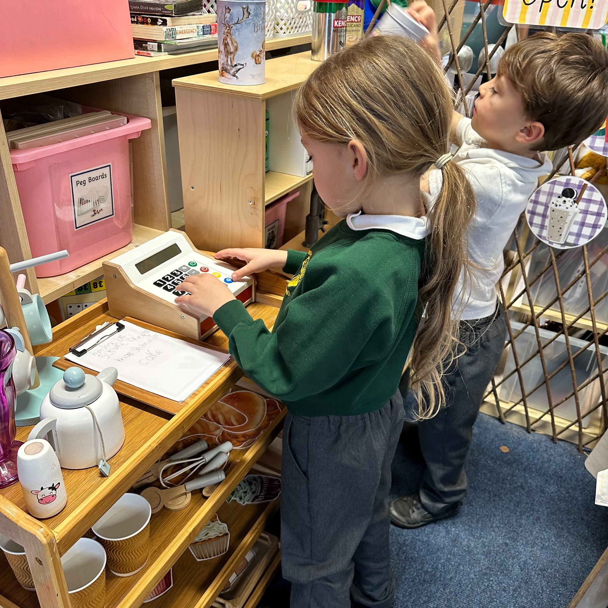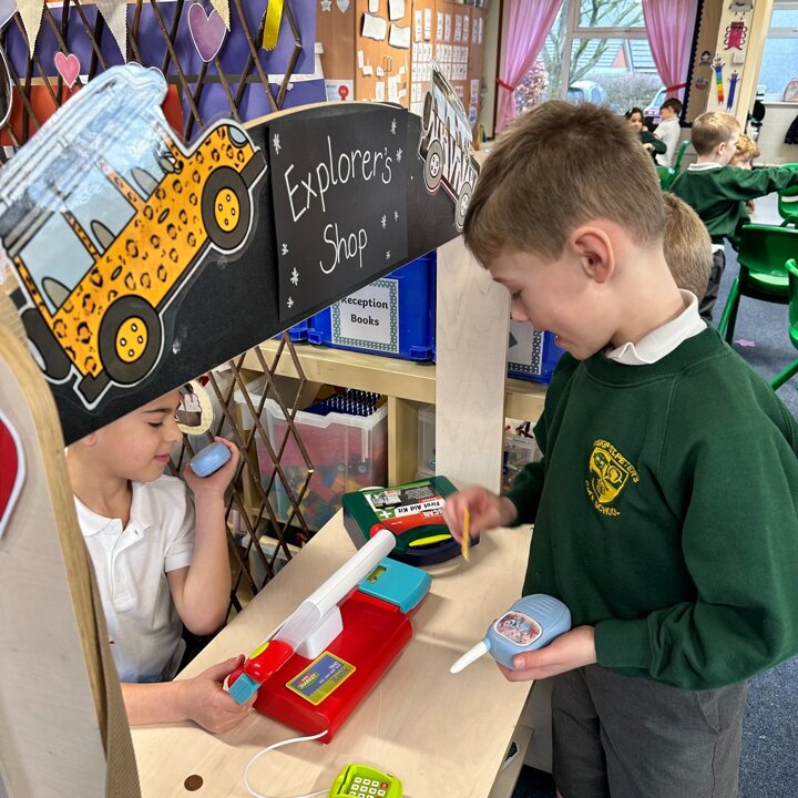 We have had a little move around in our Lower School classroom and now have a new role play area which the children are really enjoying. Our theme for learning in Year 1 and 2 this half term is ‘Explorers’ and after lots of discussion together the children got to decide what they wanted me to make for them as a new role play area so we now have a cafe and an Explorer’s shop!