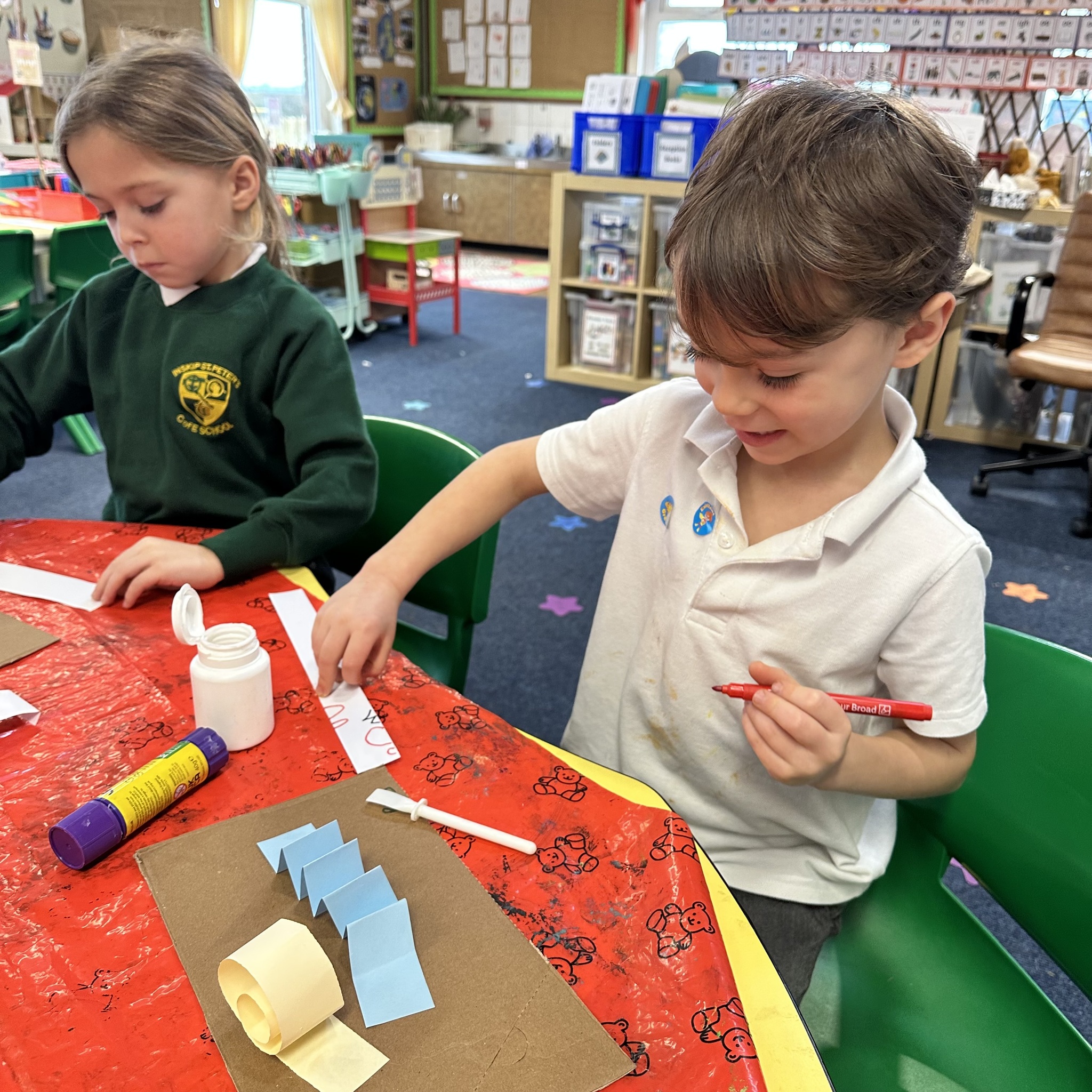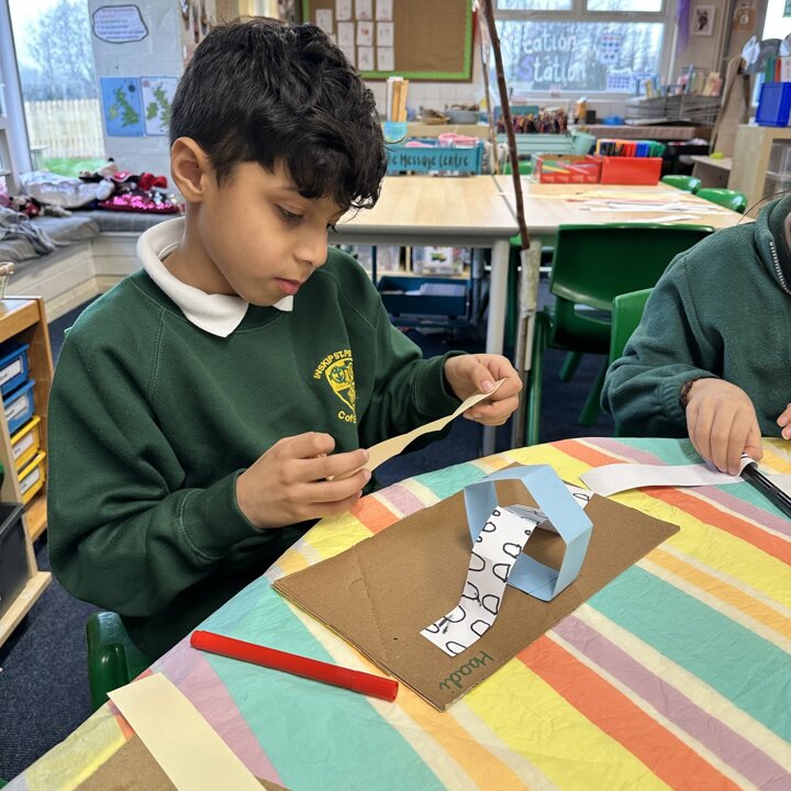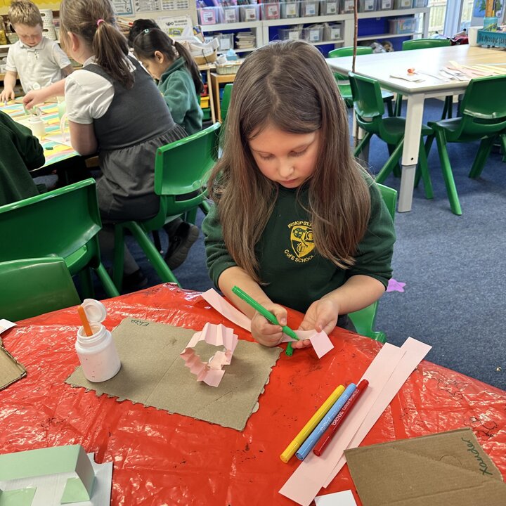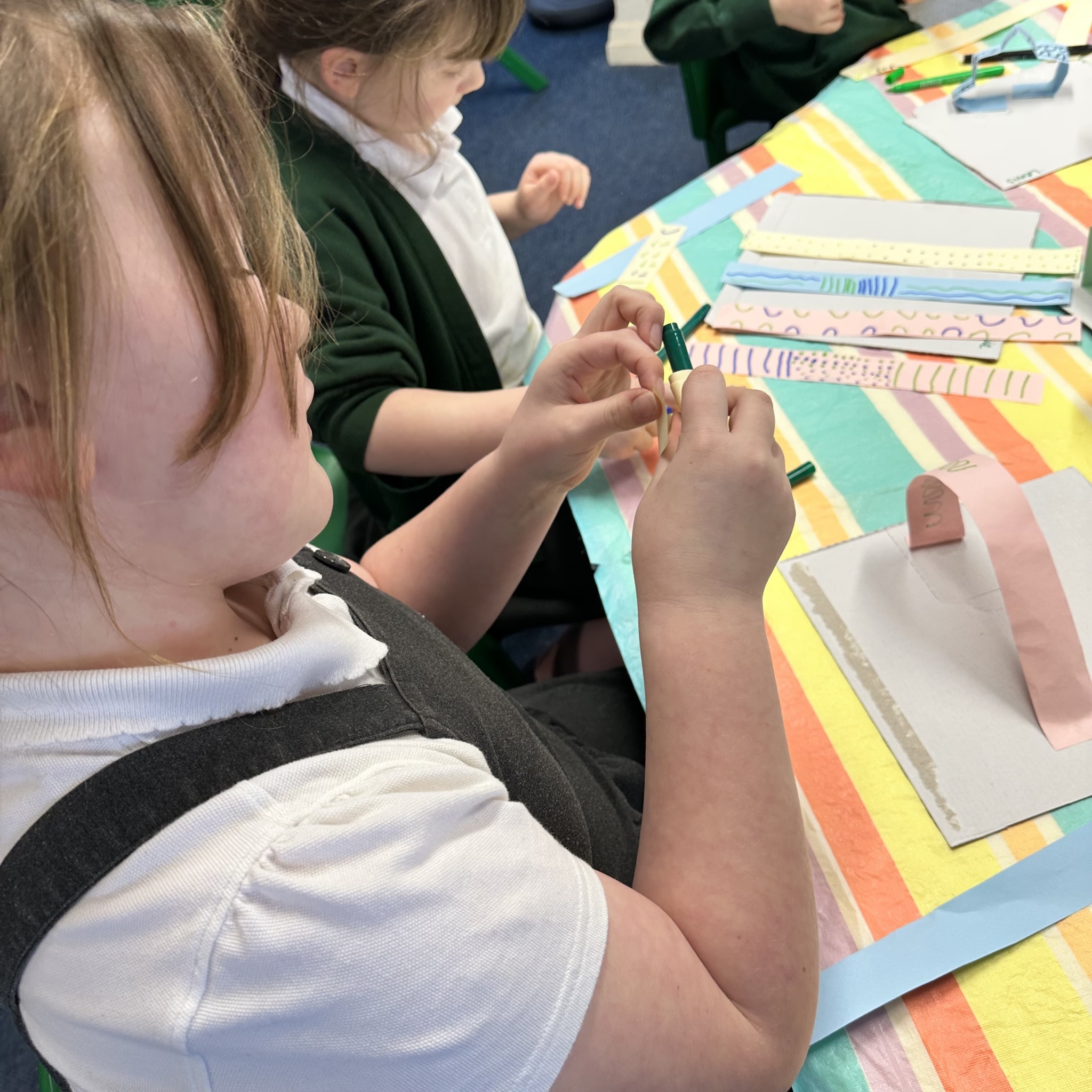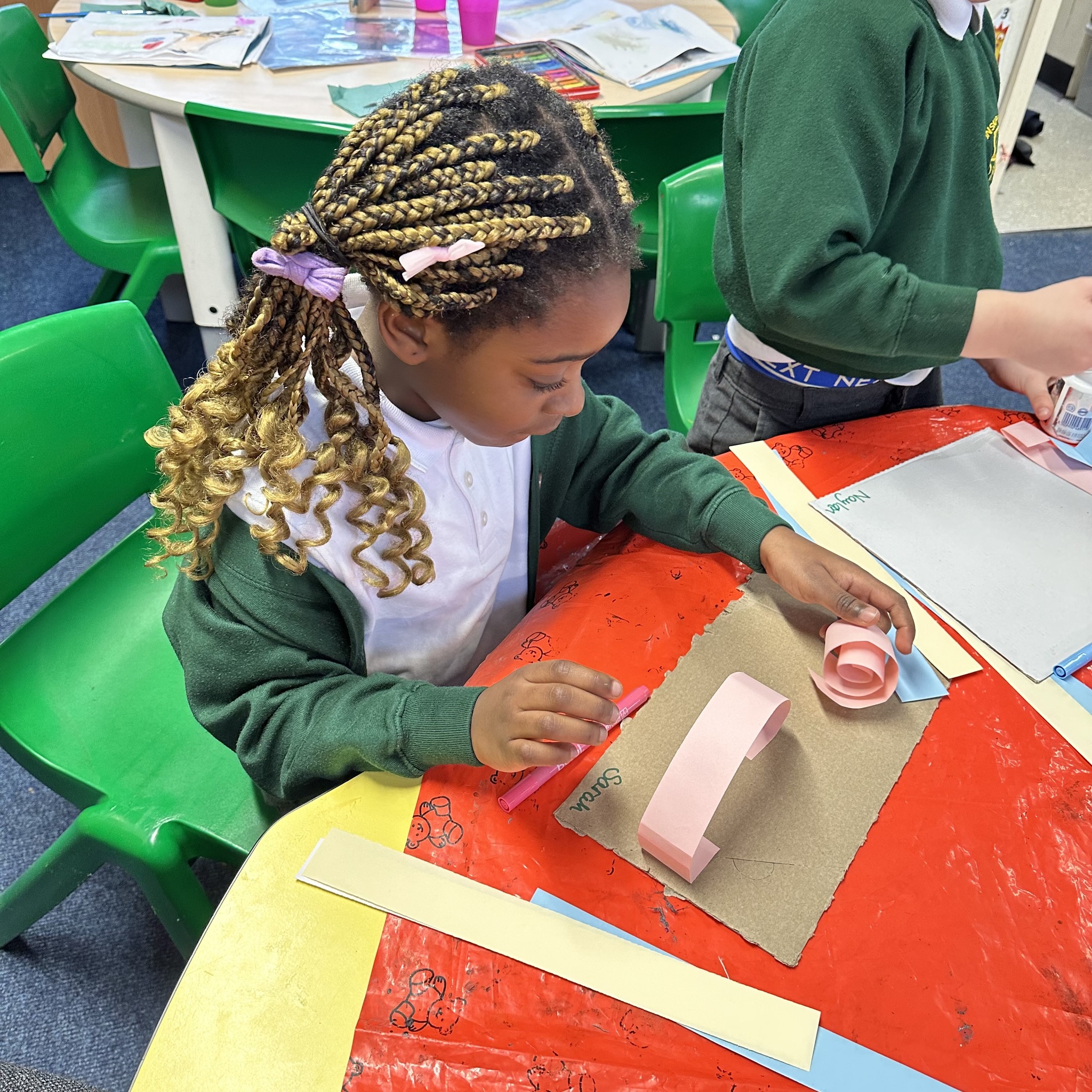In the second lesson of our sculpture project last half term the year 1 and 2 children learnt how to shape paper to make a 3D drawing.