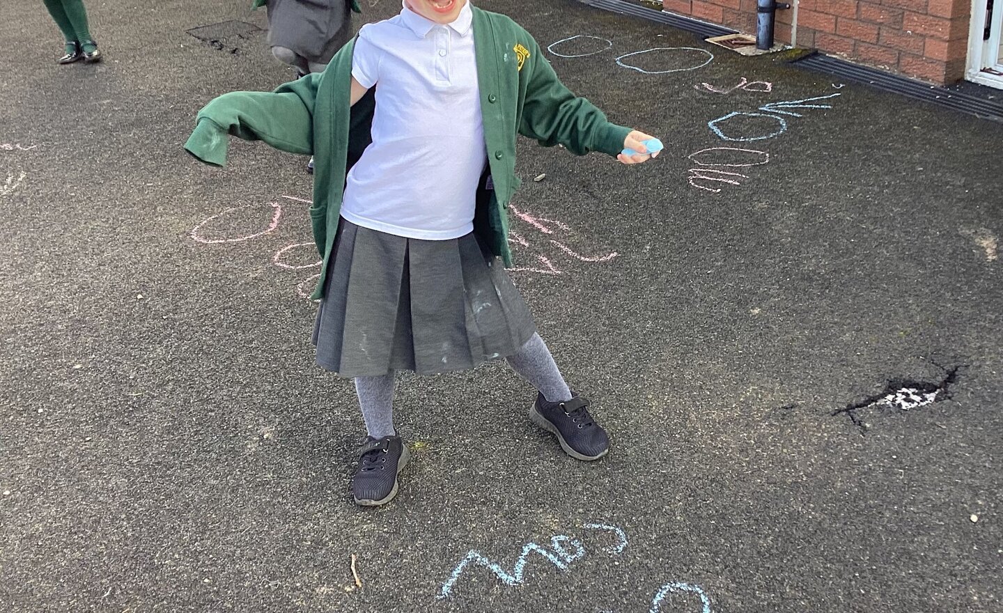 Learning the ‘ow’ sound with lots of different reading and writing games, today we got the chalk and went outside!