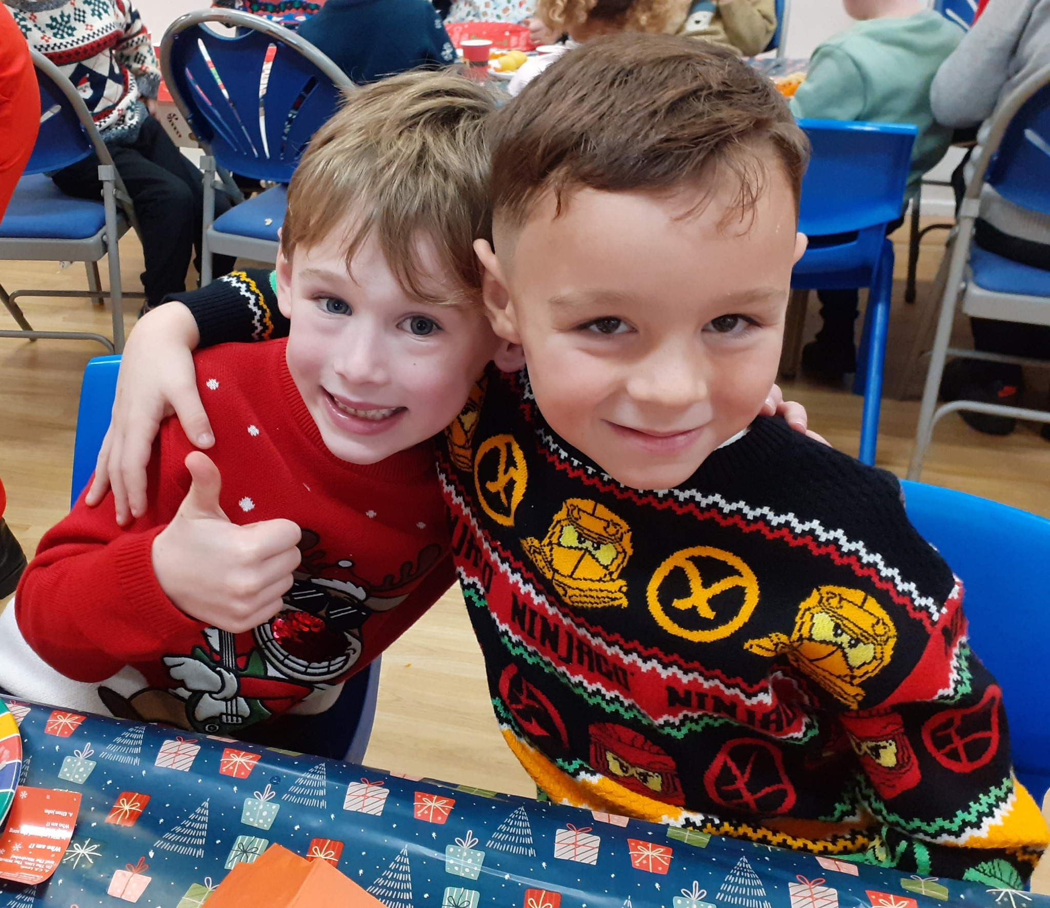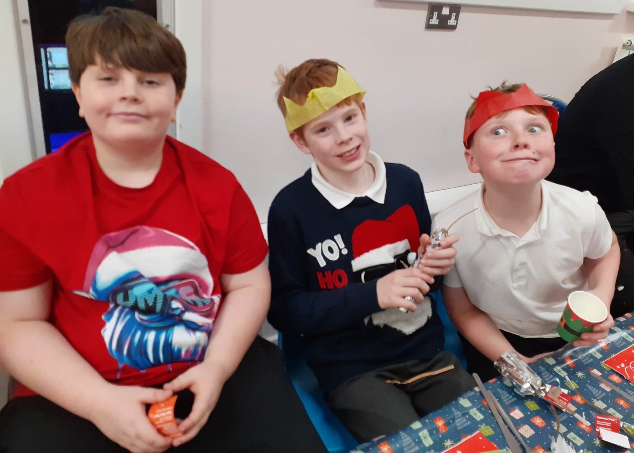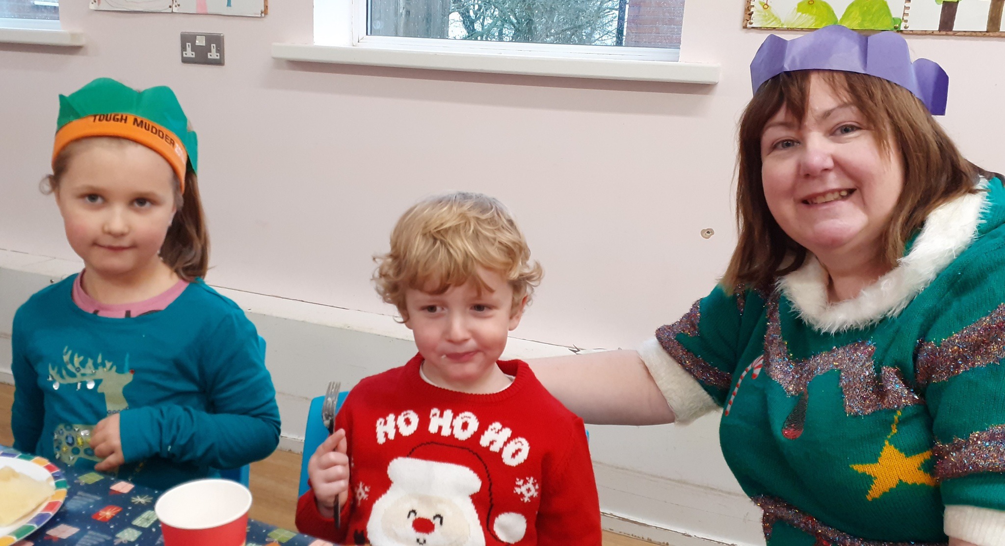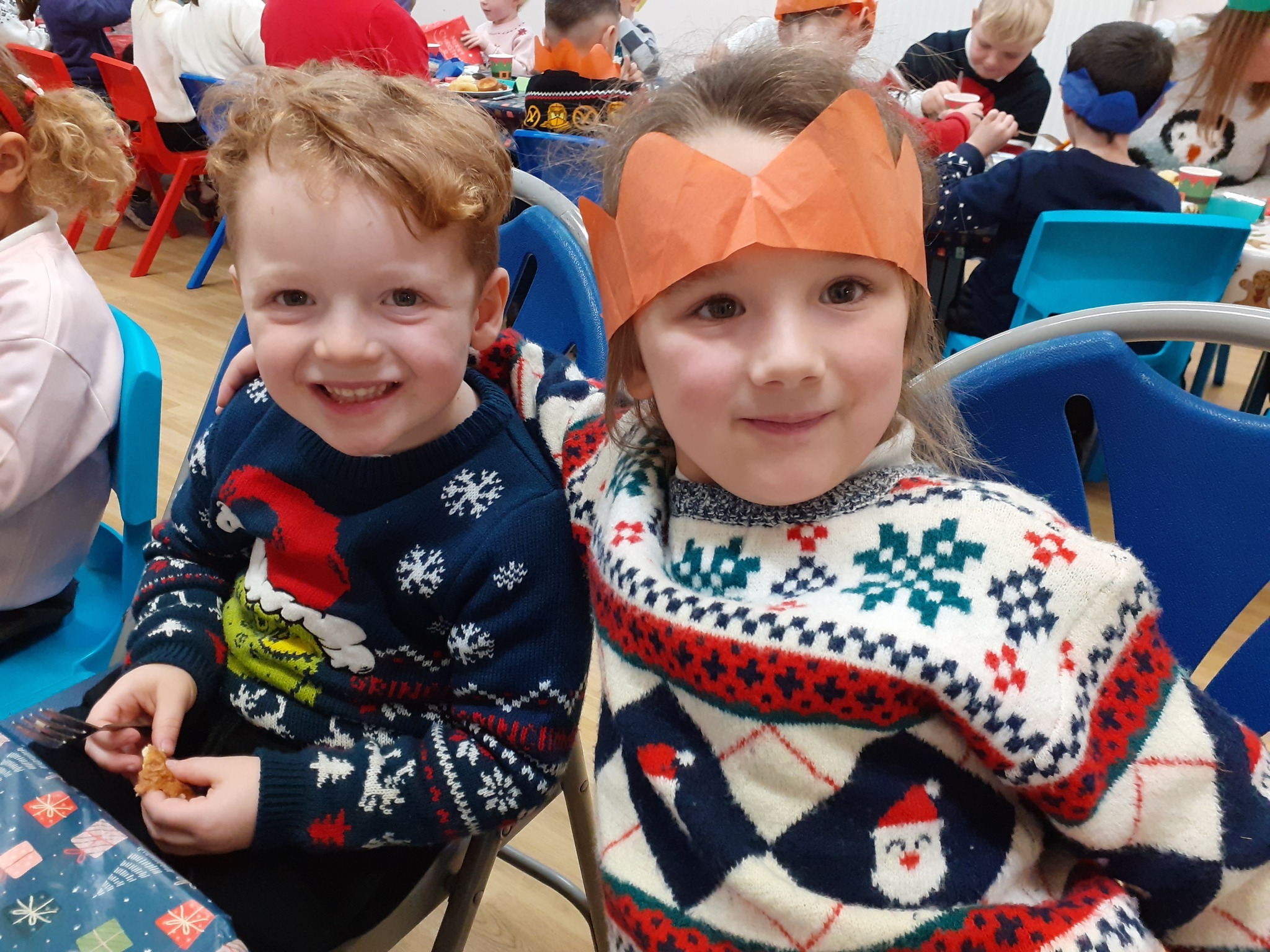 What a great Christmas dinner we ate today! We love our party day; prior to class parties we have a whole school Christmas Dinner where our school community sit together, as you can see in the photos, and our wonderful cook Mrs Billington makes a full Christmas dinner which we all thoroughly enjoy. An extra kindness is that members of our Friends Association kindly volunteer to serve the food too which is a lovely touch. Thank you so much Mrs Billington and our Friends.