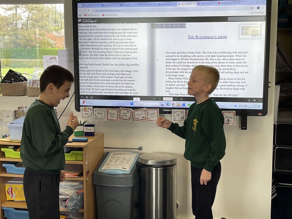 We read a chapter of Street Child and chose scenes to turn into freeze frames (see the gallery). When the freeze frames were ‘woken up’ the characters spoke about their feelings and gave their thoughts for that moment.