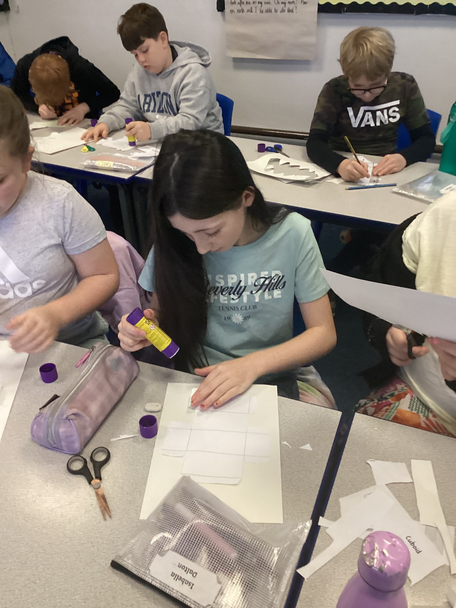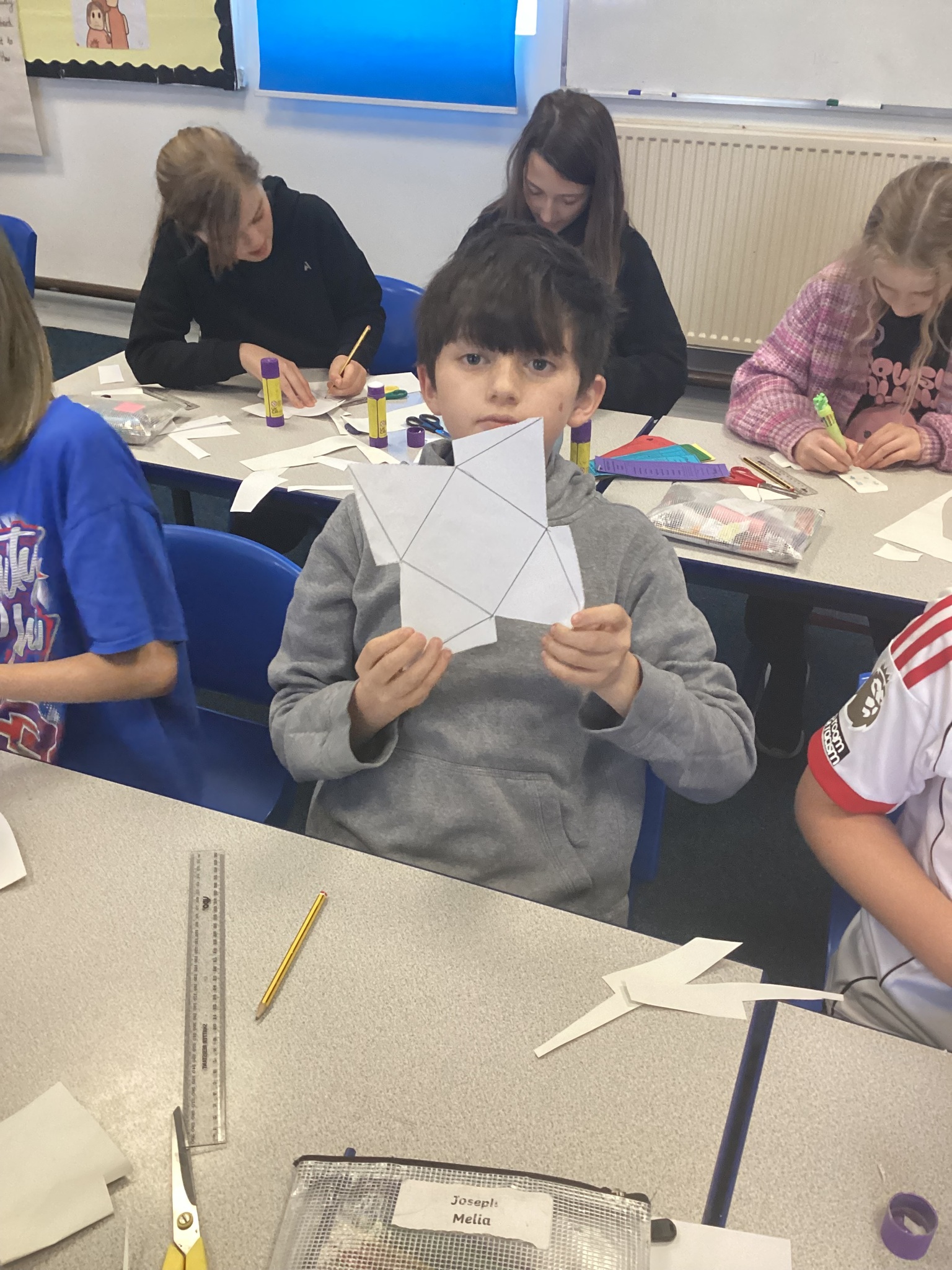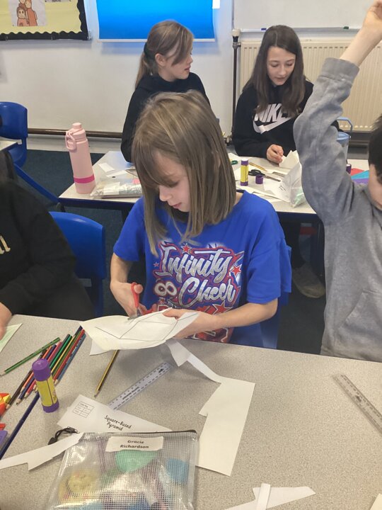Upper School have been learning about 3D shapes in our Maths lessons and today we explored how to make a 3D shape using a net. The children enjoyed cutting out, scoring and folding to create a range of shapes including octahedrons and tetrahedrons which were very tricky to put together!
