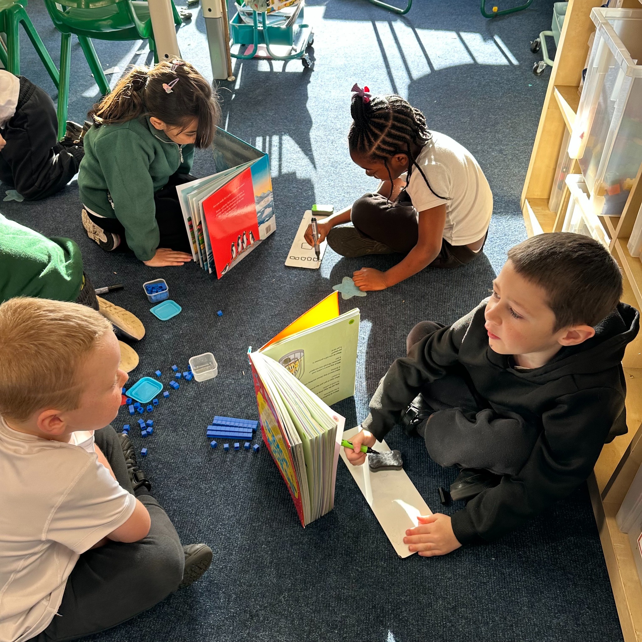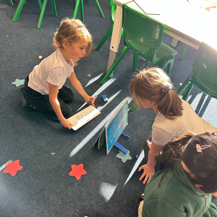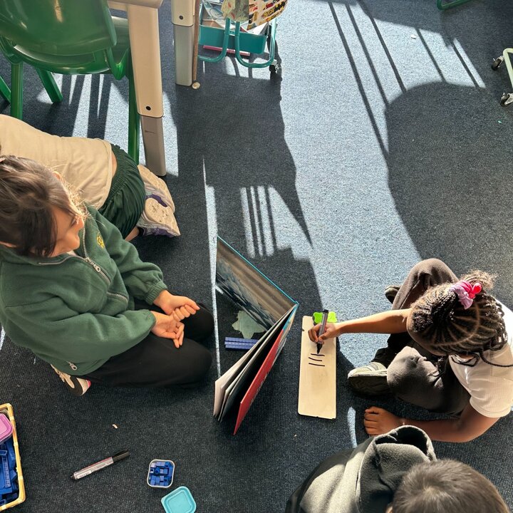 Today they played a game when one child created a representation of a number less than 50 using base 10 whilst hiding it behind a book from their partner. They then told their partner how many tens and ones they had laid out and their partner’s challenge was to draw the correct amount of tens and ones. They did so well and enjoyed their learning!
