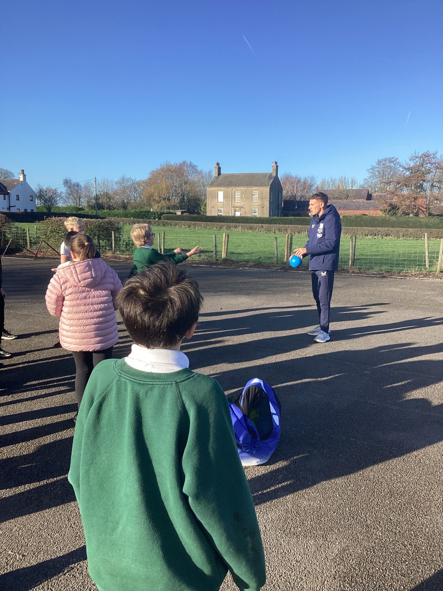 What a fantastic PE lesson we had with Logan from PNE! We learnt how to play invasion ball games by improving our throwing and catching skills; he taught us different techniques for attack and defence; we learnt about using space and keeping moving to win a goal.