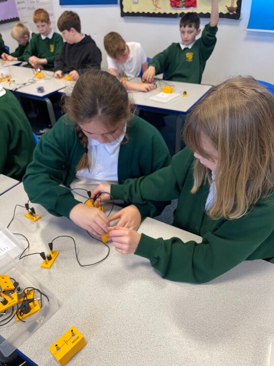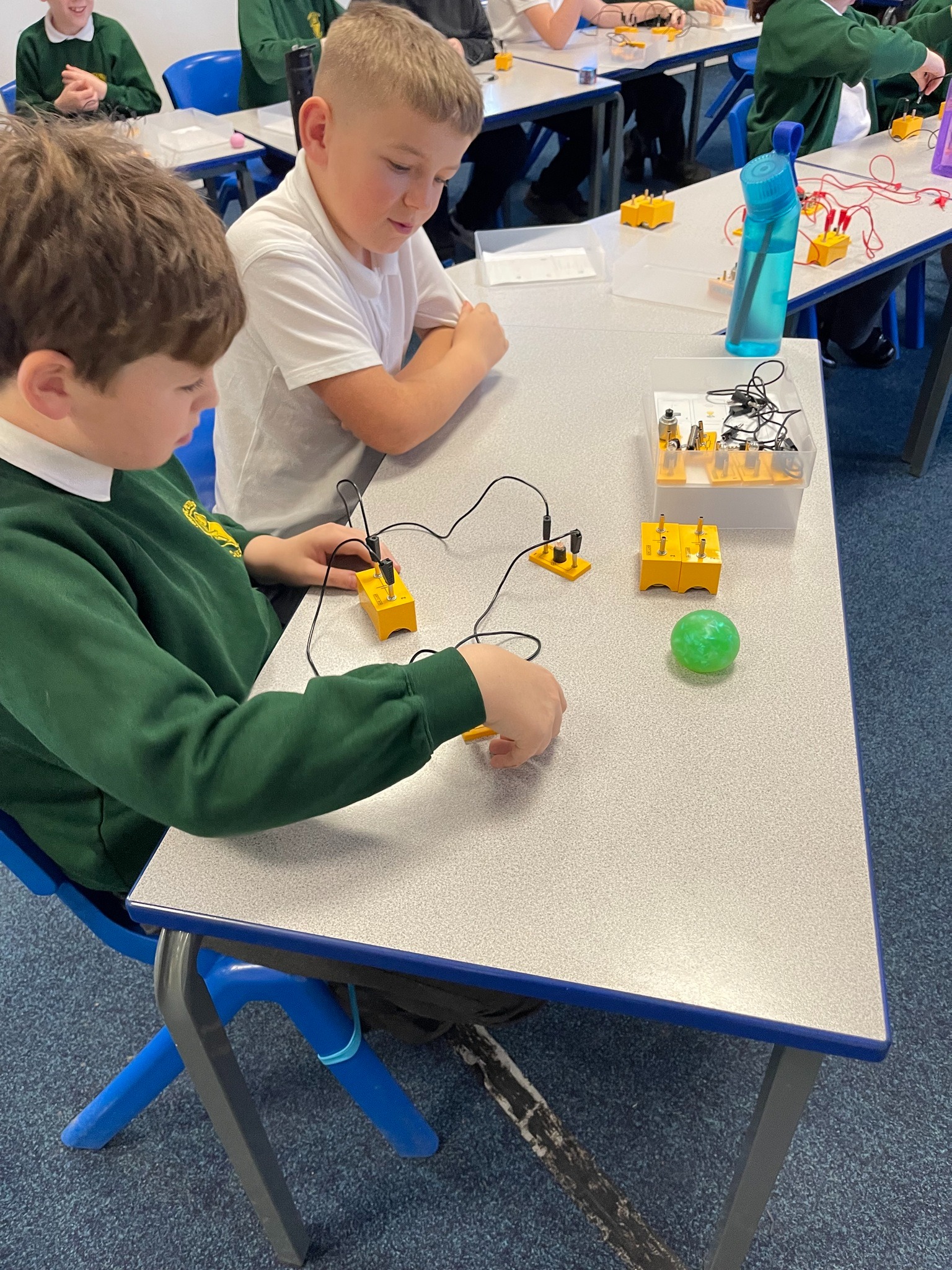 Upper School class had a visit from Mhairi, STEM ambassador from the Ogden Trust, who ran two workshops. The one in the morning reinforced our current learning about electricity with practical activities involving making series circuits using circuit diagrams, testing voltage and to extend the children’s knowledge even further, how to make a parallel circuit.