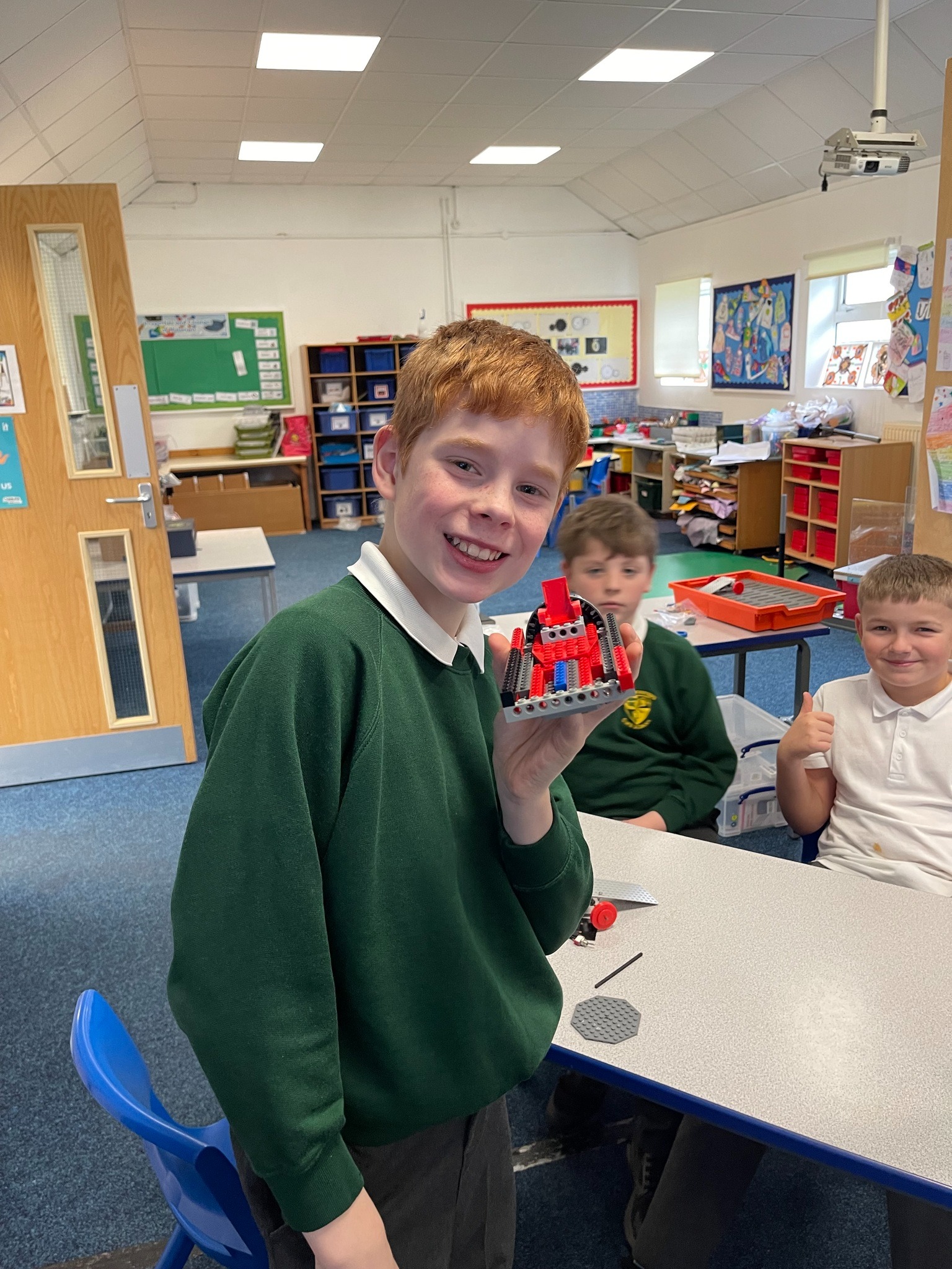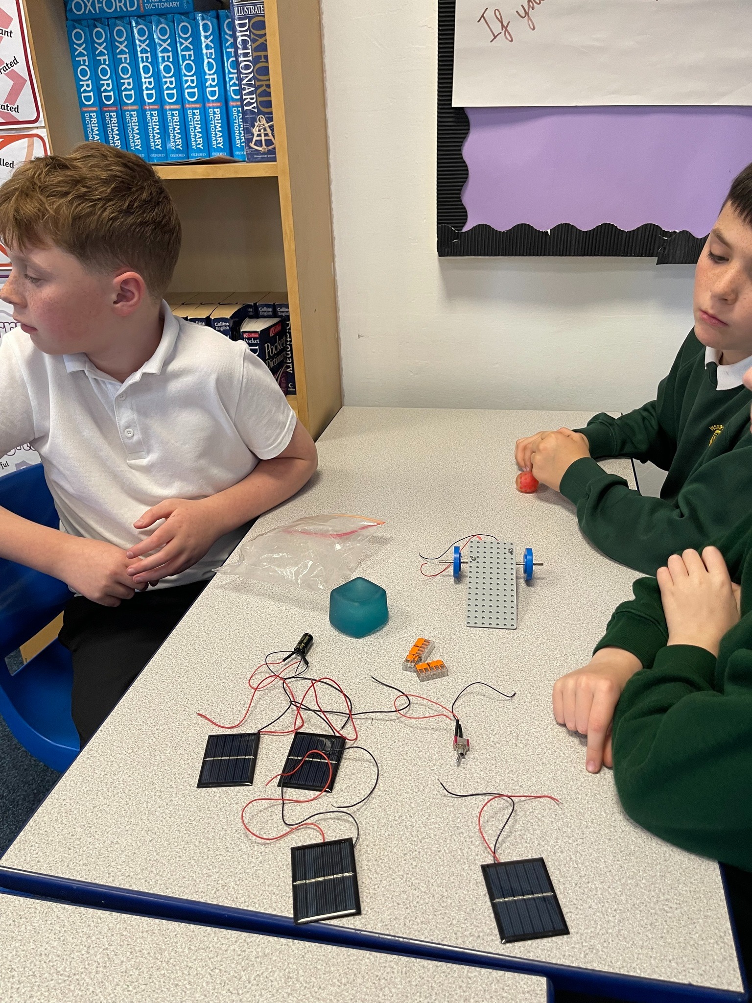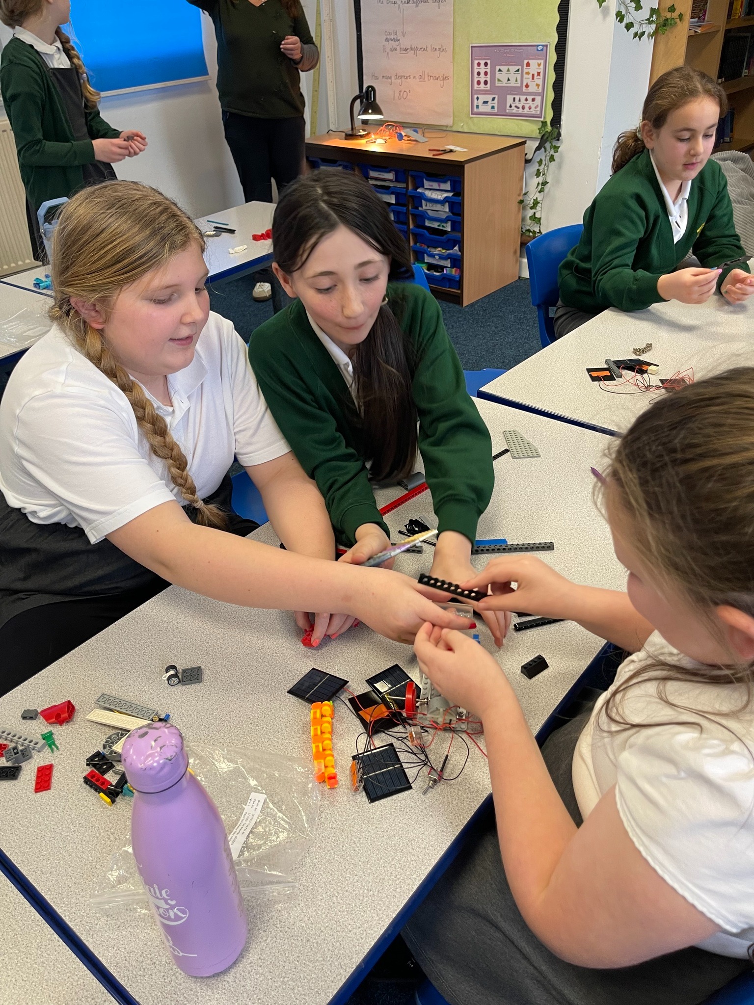 In the afternoon, Mhairi taught us all about renewable energy and gave the class the challenge of making working solar powered cars! Firstly, the children carefully followed instructions to get the solar panels working and secondly used a huge box of LEGO to design a car body for the panels to go on. Two groups were so successful they were able to set their cars going under the lamps that Mhairi had brought in.