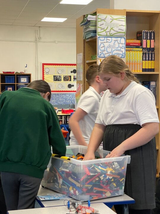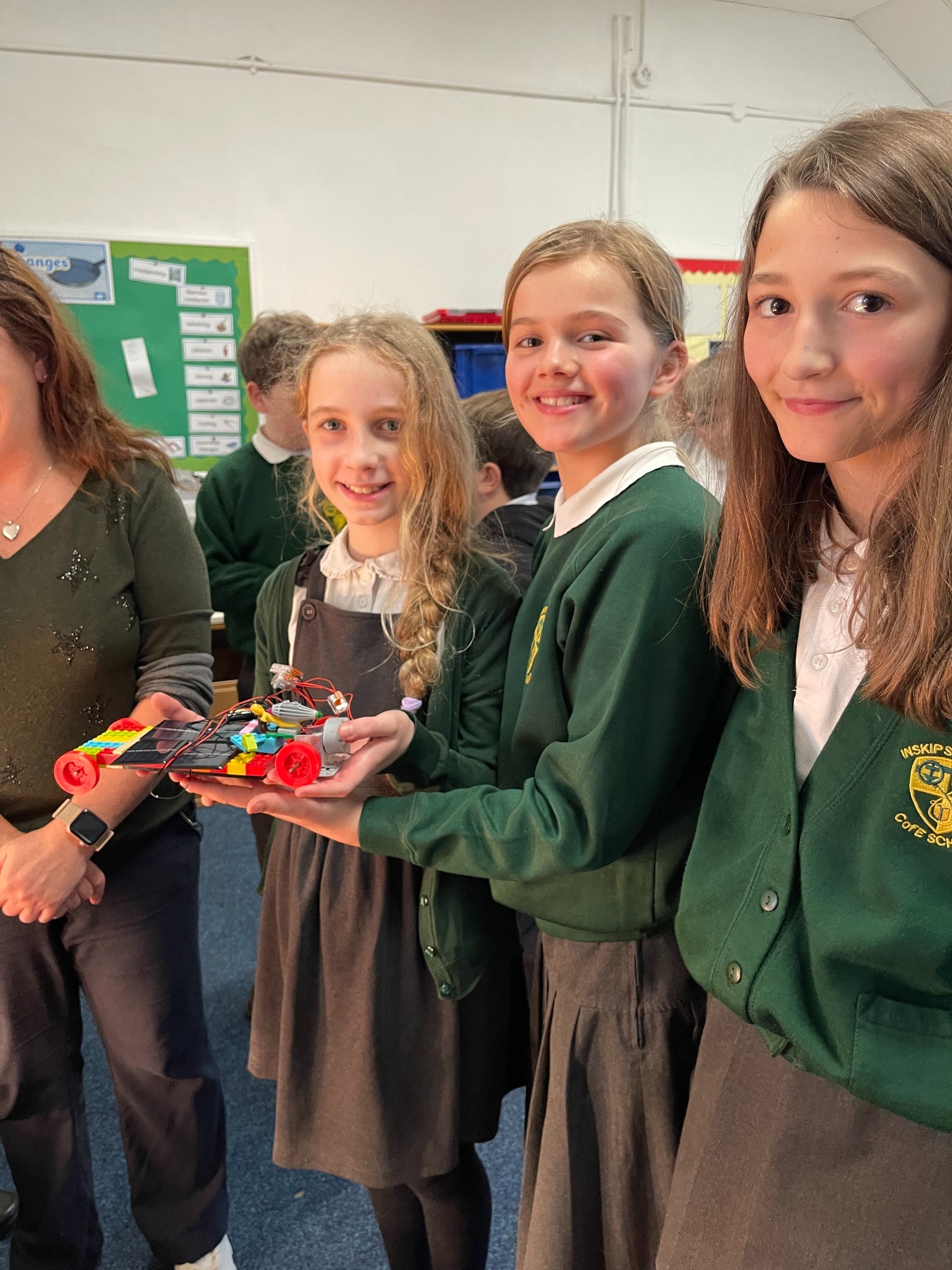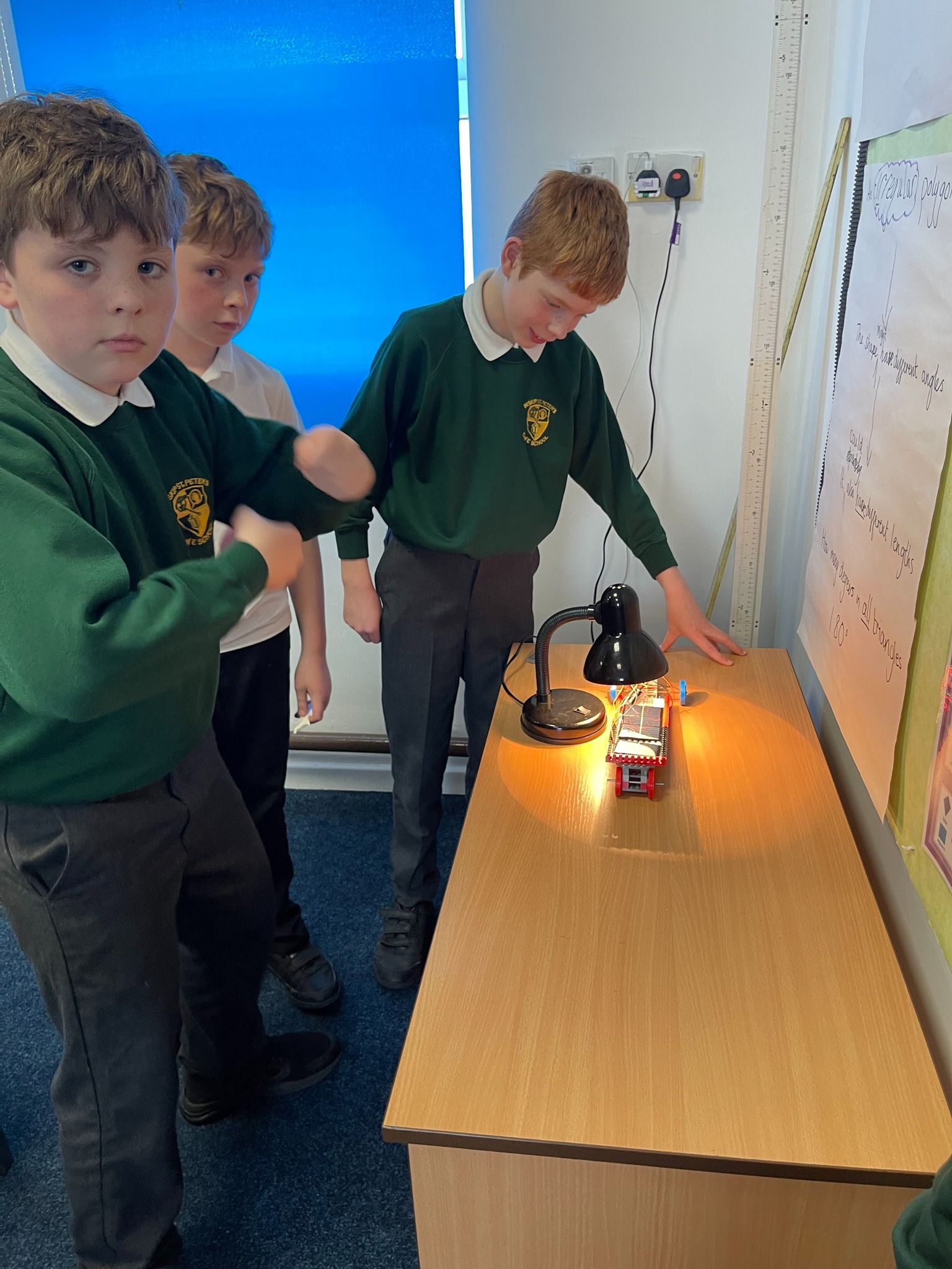 In the afternoon, Mhairi taught us all about renewable energy and gave the class the challenge of making working solar powered cars! Firstly, the children carefully followed instructions to get the solar panels working and secondly used a huge box of LEGO to design a car body for the panels to go on. Two groups were so successful they were able to set their cars going under the lamps that Mhairi had brought in.